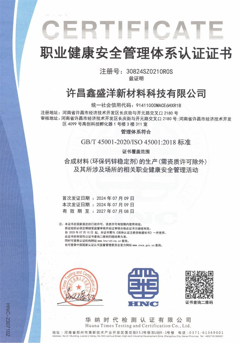 公司擁有江山亞盛新材料科技有限公司和許昌鑫盛洋新材料科技有限公司兩個生產基地,秉承“客戶至上、質量、服務至上”的理念,贏得了廣大客戶的一致好評。公司是一家專注于PVC高端穩定劑研發、制造和銷售的綜合性工廠,提供全方位的技術服務。目前公司擁有PVC電線電纜、PVC玩具注塑成型、PVC硬管、管件、型材、發泡制品、PVC鞋材、透明制品等環保穩定劑,可滿足市場上大多數PVC制品的使用。 公司現有員工80余人,專業研發人員6人,PVC環保穩定劑自動化生產線4條,生產能力5萬噸/年。 25年的技術研發經驗, 專業的研發設備,完善的質量體系,熱忱的服務為您提供更好的產品和服務。
